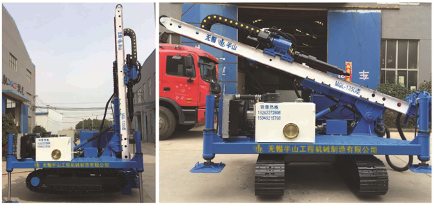 M G L-13 5 D型履帶式深基坑錨固鉆機是無錫半山工程機械制造有限公司根據國內地鐵、高層建筑、機場、 地源熱泵及其它深基坑進行描固、旋噴、降水所開發的效率高的鉆機。